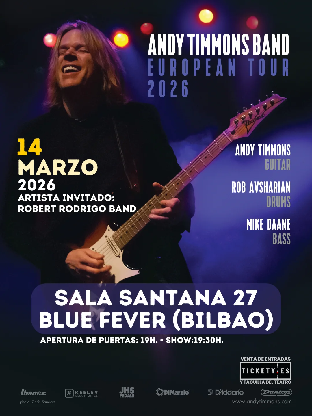 El aclamado guitarrista Andy Timmons aterriza en Bilbao para presentar Recovery, su último trabajo, junto a los grandes clásicos de su carrera. Con más de 30 años sobre los escenarios, ha trabajado con artistas como Paul Stanley o los Beach Boys, y ha girado junto a Satriani y Vai. Le acompañará el virtuoso bilbaíno Robert Rodrigo y su banda, en una cita imprescindible para los fans del rock instrumental y las seis cuerdas.